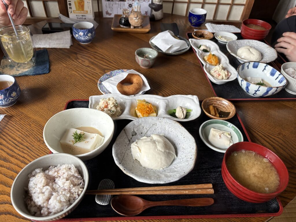 お昼は自家製豆腐で有名な「おとうふ処うめだ屋」で豆腐定食を食べました。お豆腐の味がしっかりと感じられてとても美味しかったです。塩と醤油をかけて食べるのですが、塩の方が豆腐の味を感じられて好みでした。豆乳の味がすごく濃くてどの豆腐も美味しくいただきました。