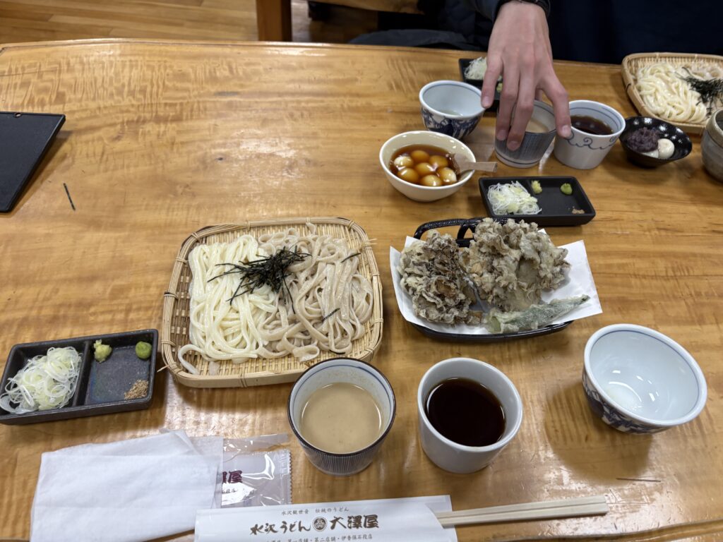 日本三大うどんの一つとして知られる水沢うどんを食べることが出来ました。麺はツルツルだけどコシがしっかりとあって、めんつゆとごまだれの2種類で食べることができて、ごまだれが新鮮で美味しかったです。舞茸が有名らしく天ぷらがとても大きくて香りが良く美味しかったです。また、出てくるお茶がとても美味しかったです。みたらし団子も頼んだのですが、これがすごくモチモチだけど柔らかくて美味しかったです。
